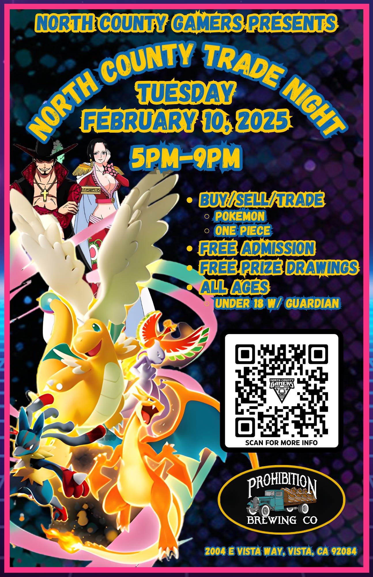 Calling all Trainers and Pirates! The wait is over. This Tuesday, February 9, we are descending upon Prohibition Brewing Co. in Vista for a night of trading, community building, and the official start of our most ambitious project yet.
